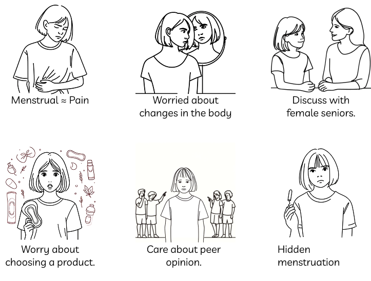 Current education overlooks the emotional journey. Existing menstrual education is often limited to biological facts and hygiene management. However, research shows that girls struggle significantly with the psychological and social aspects—such as mood swings, gender identity, and self-exploration—which are rarely addressed in traditional curriculums.