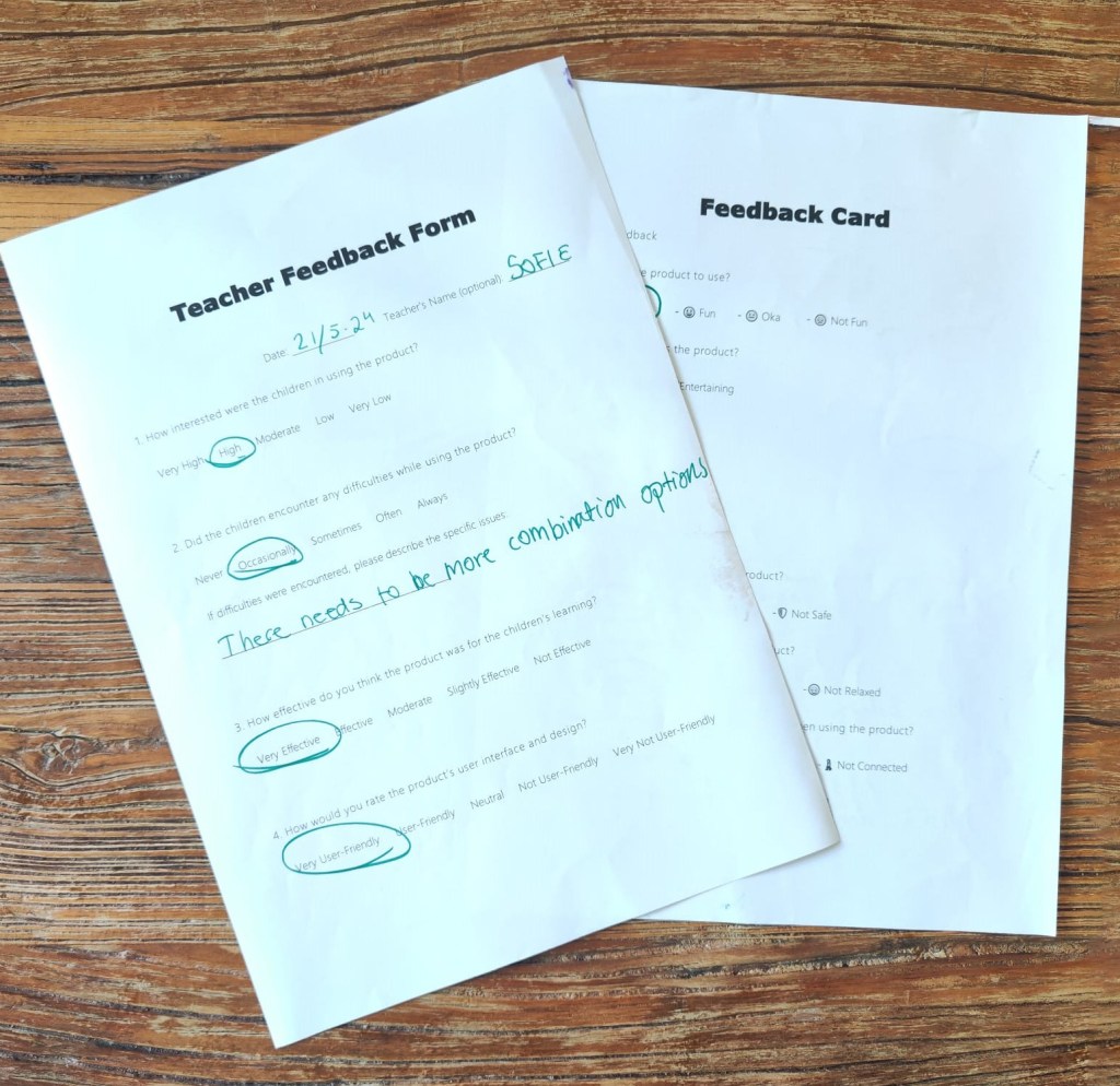 I conducted initial user testing with low-cost prototypes focused on game modes, revealing that the interactive mode captured children’s interest and encouraged discussions about menstruation; I followed up with a post-test questionnaire.