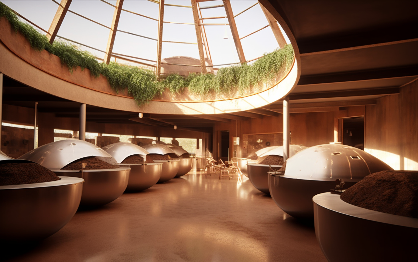 My Work Inspired by previous collaborations with Peter Larsen Kaffee, the project envisions a future where coffee production is localized, sustainable, and resilient—offering an alternative to the exploitative, high-input monoculture model. The seamless integration of architecture, agriculture, and waste regeneration presents a vision of sustainability that is both functional and inspiring.