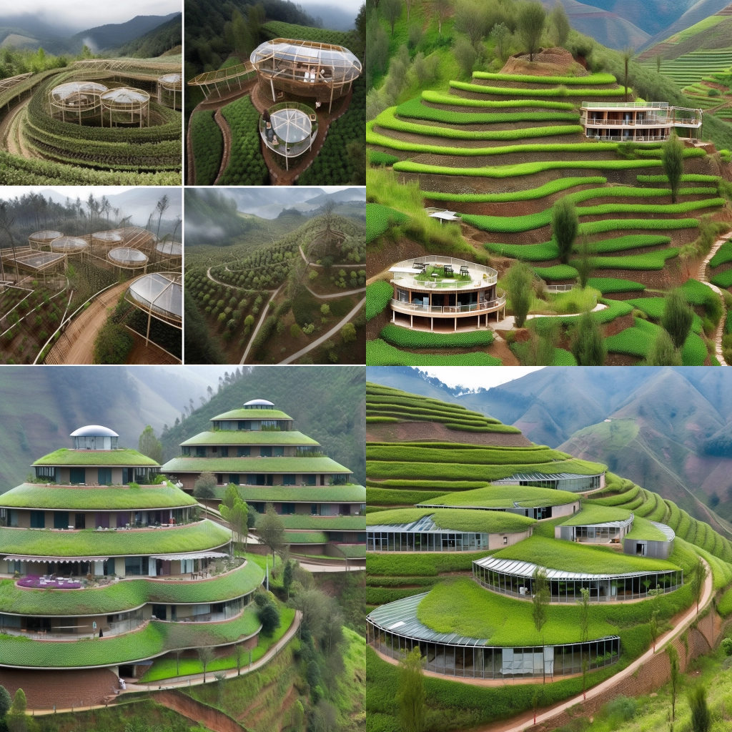 - Yunnan coffee estate in a building, single dwelling , Parametric design , with hydroponic agricultural, located in Yunnan, China, raw documentation, 32k uhd, –ar 16:9 –niji 5